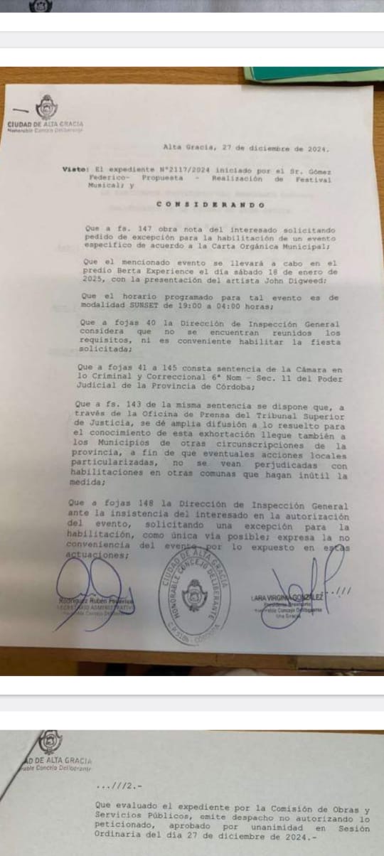 La Municipalidad de Alta Gracia, amparada en la resolución de la justicia que exhorta a municipios y comunas no permitir la realización de fiestas electrónicas.