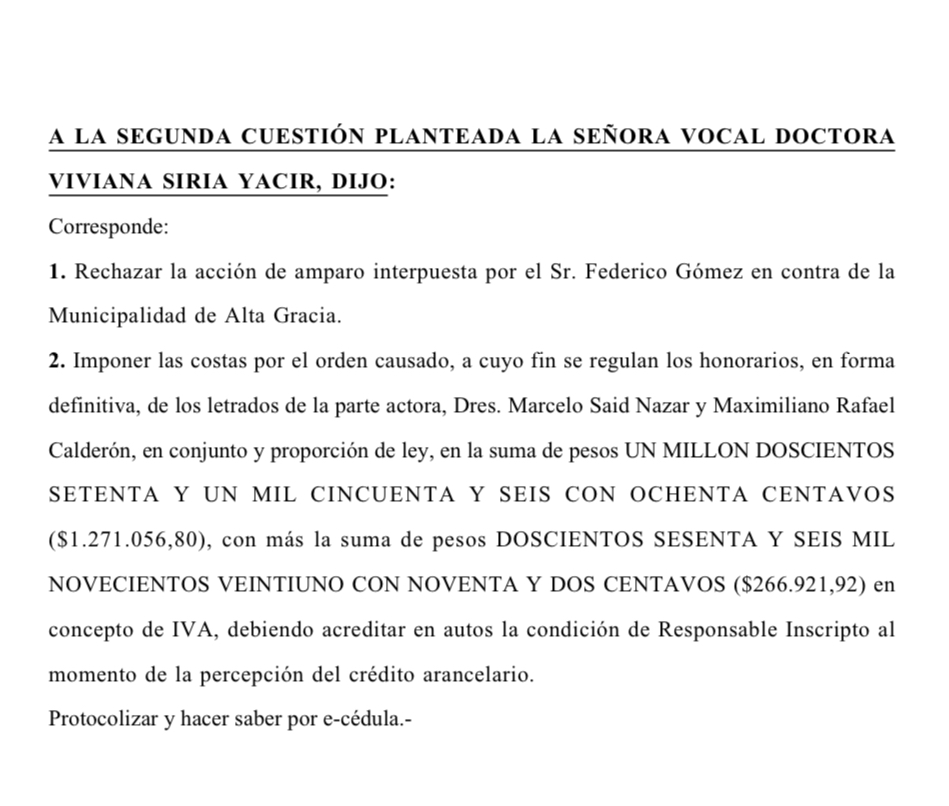 Hoy, la Vocal de la Cámara de Feria, Doctora Viviana Siria Yacir, negó la habilitación de la feria y no sólo eso sino que ordena a pagar al actor $ 1.271.065 a modo de costas.