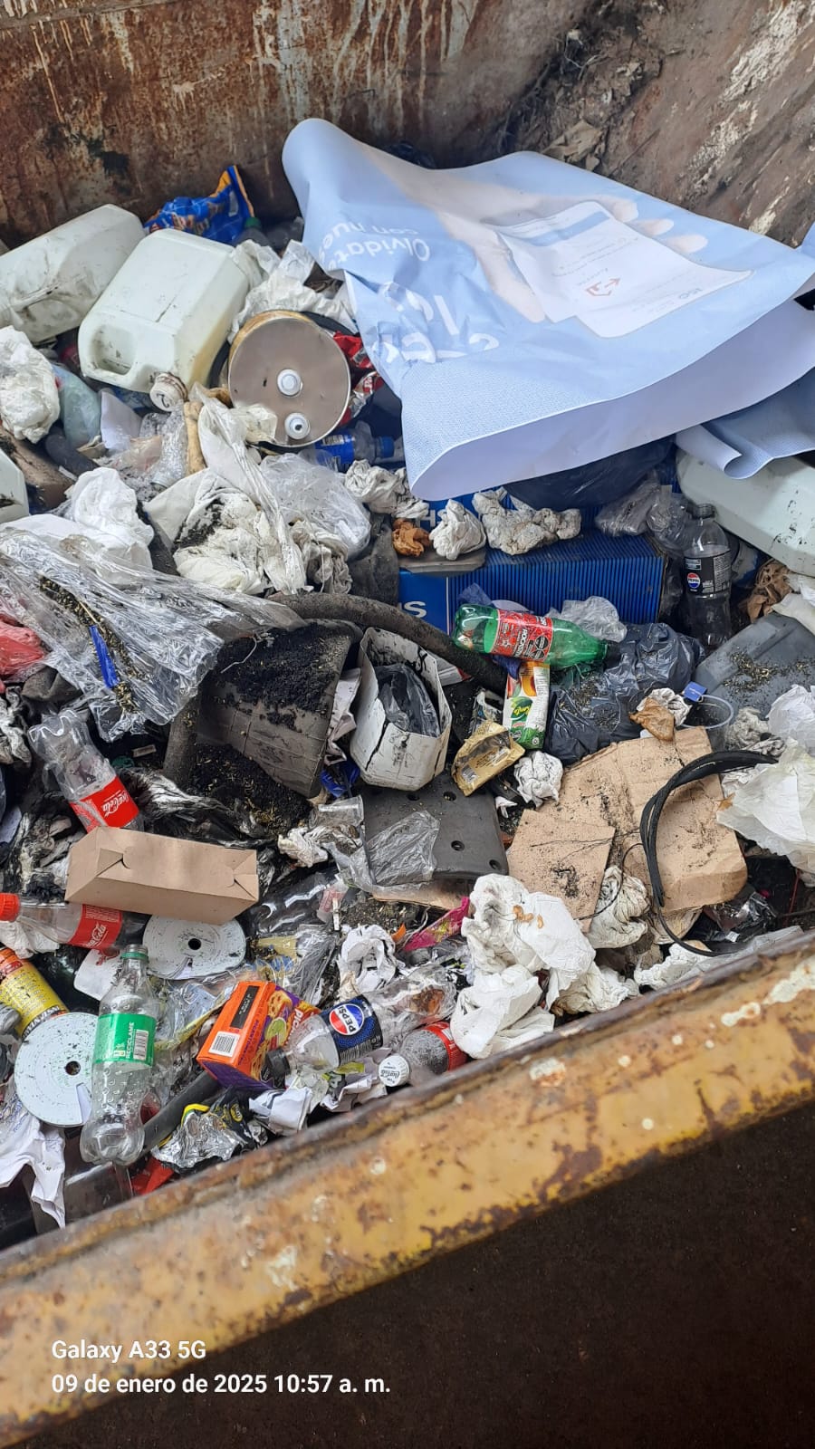 Además, se observaron contenedores y tachos bajo techo que contienen residuos sólidos urbanos con otros no convencionales, como guantes, trapos, papeles, estopa, mangueras, filtros usados, repuestos. Todos los elementos estaban impregnados con hidrocarburos.