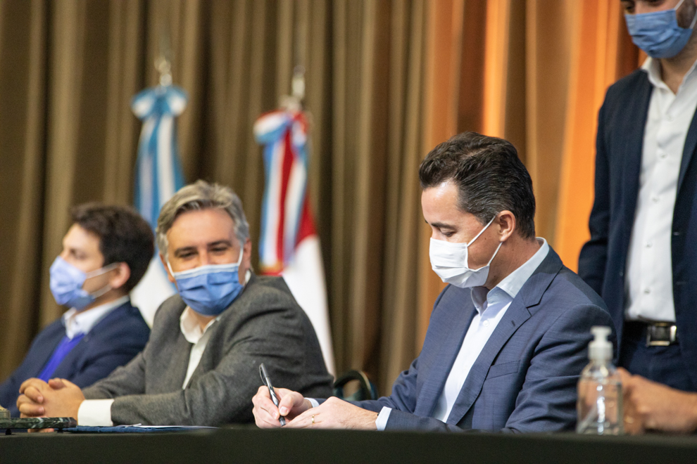 El Intendente Martín Llaryora y el Vicegobernador Manuel Calvo firmaron hoy el contrato para la ejecución de obras de red de colectoras cloacales para 198 manzanas de barrio Villa El Libertador, con una inversión de $ 308.586.785,27.