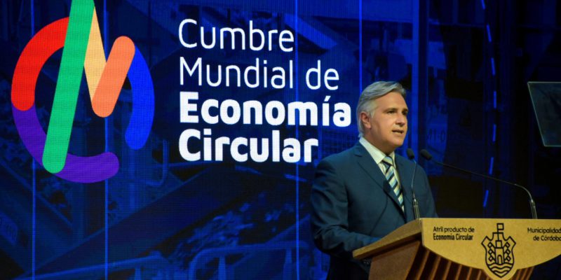 El intendente Martín Llaryora encabezó hoy la apertura de la primera Cumbre Mundial de Economía Circular, organizada por la Municipalidad de Córdoba, a través del ente BioCórdoba, con el acompañamiento de la Universidad Nacional de Córdoba y el Gobierno de la Provincia de Córdoba.