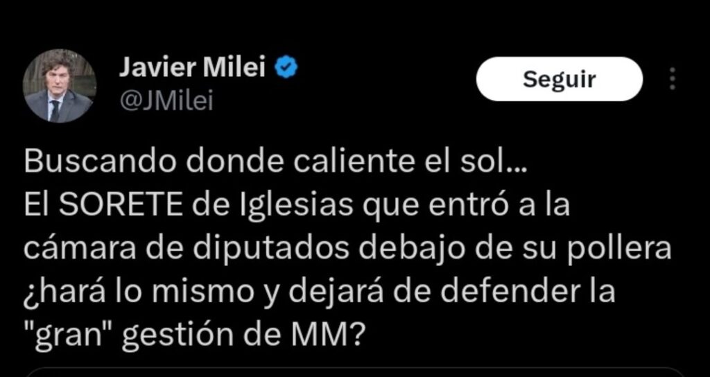Corría el año 2022, cuando Milei, aún en su fase de economista disruptivo, compilaba un “ranking de insultos” que incluía a Iglesias entre sus blancos favoritos. Lo tildaba de todo: desde “bobito” hasta “pedazo de pelotudo”, en una catarata verbal que reflejaba las internas del PRO y el rechazo libertario a la “casta” tradicional. Iglesias, por entonces un diputado macrista con perfil combativo, era visto como parte de ese establishment que Milei prometía dinamitar.