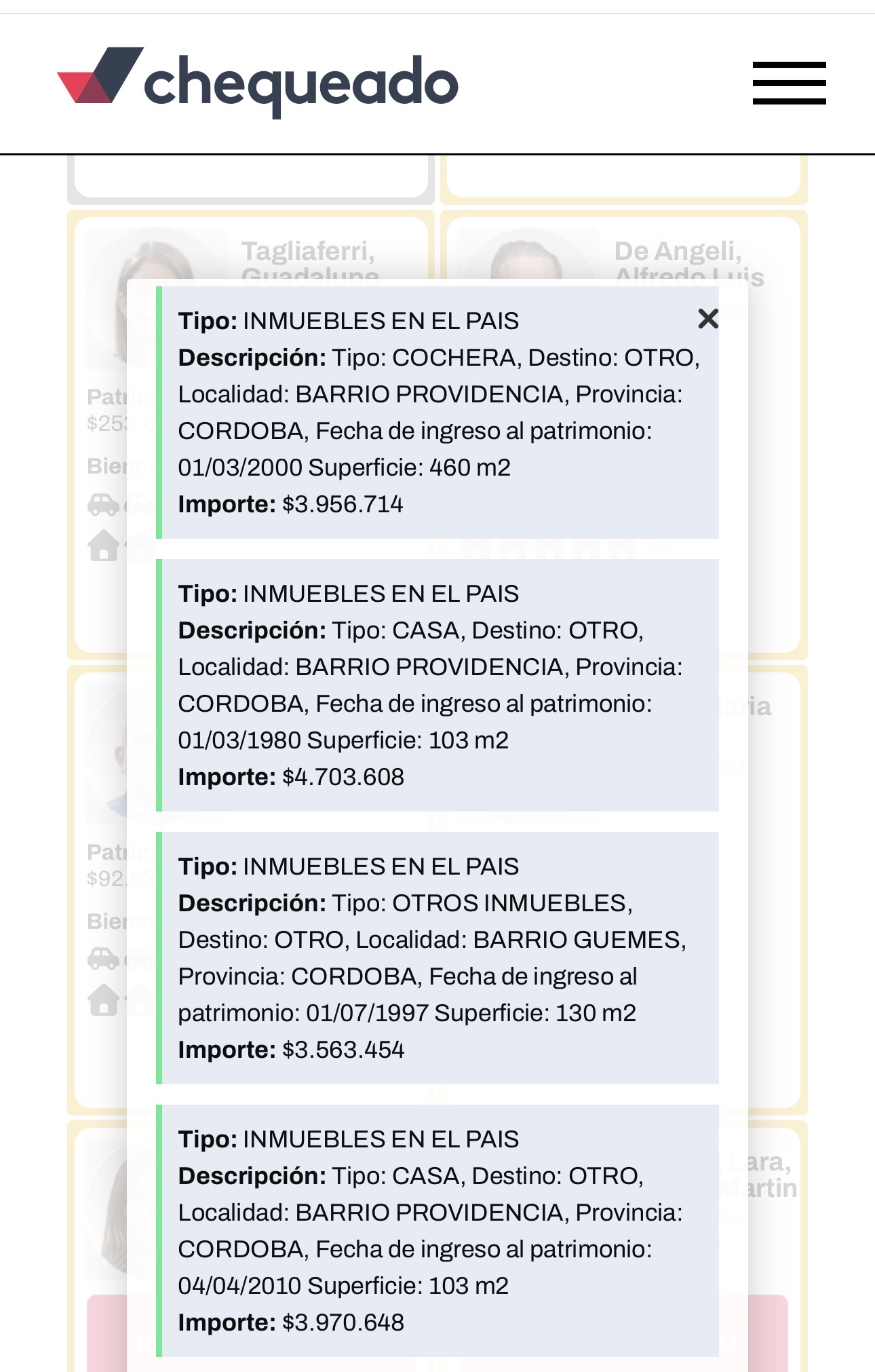 En Córdoba uno de los casos más resonantes fue el de la declaración jurada del Senador Luis Juez. Este presentó poseer 4 propiedades, una de ellas una lujosa casa en uno de los barrios más encumbrados de Córdoba: Cañuelas Country Golf, en la zona sur de la ciudad.