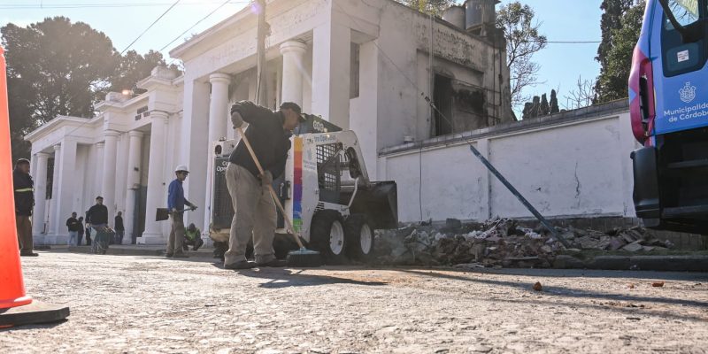 En el Cementerio San Vicente, la Municipalidad de Córdoba está llevando adelante una primera etapa de tareas de puesta en valor de los espacios patrimoniales, entre los que se encuentra las salas velatorias, capilla , veredas y la fachada por calle Martín Cartechini.