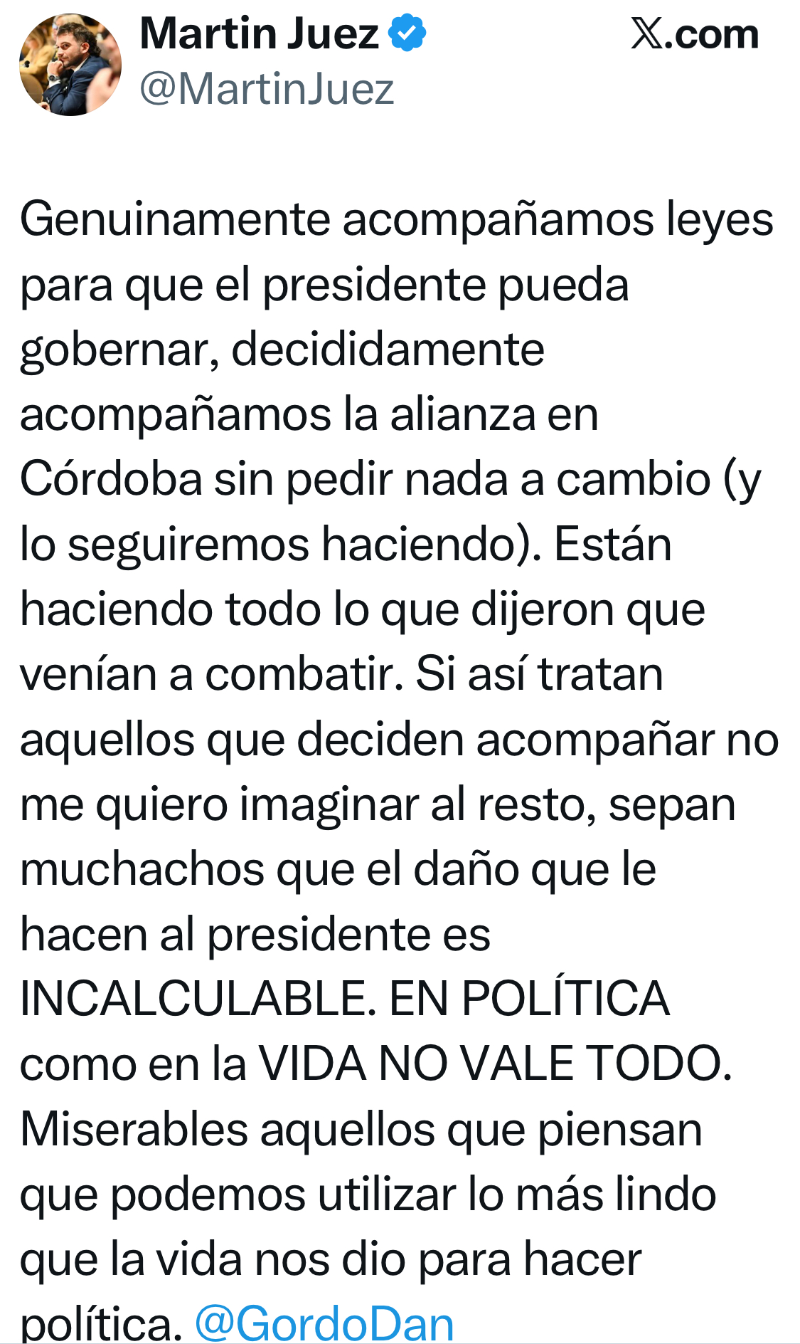 En conclusión, el posteo de “Gordo Dan” no solo cruzó un límite ético, sino que también evidenció los desafíos del oficialismo para controlar el discurso de sus adherentes más radicalizados, generando un daño que, según algunos, afecta directamente la imagen del presidente Milei. La controversia sigue resonando en redes y medios, con llamados a una reflexión sobre el respeto y la responsabilidad en el debate político.