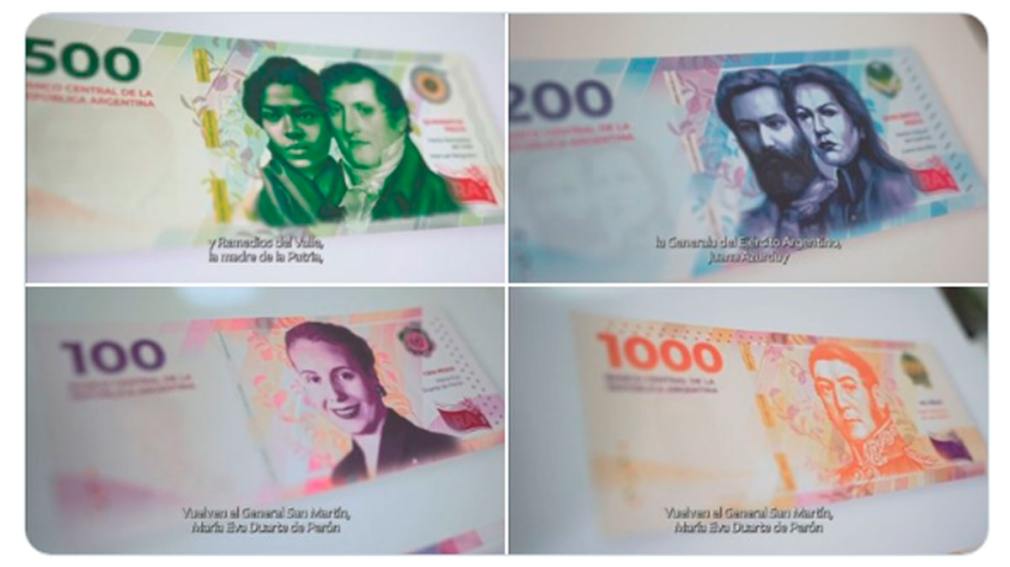 Alberto Fernández presentó este lunes en Casa Rosada los nuevos billetes de curso legal, cuya característica principal es el regreso de los próceres y de figuras históricas en reemplazo de las imágenes de flora y fauna que ilustraban a los anteriores.José de San Martín, Eva Duarte de Perón, Martín Miguel de Güemes, Juana Azurduy, Manuel Belgrano y Remedios del Valle son los rostros elegidos para los billetes. Además, en sus dorsos, tienen postales de hechos trascendentales protagonizados por esos personajes.