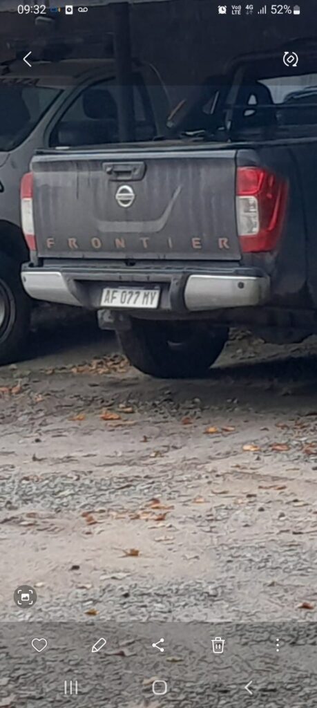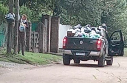 La foto era muy puntual, una Frontier dominio AF077MY hacía de camión recolector.