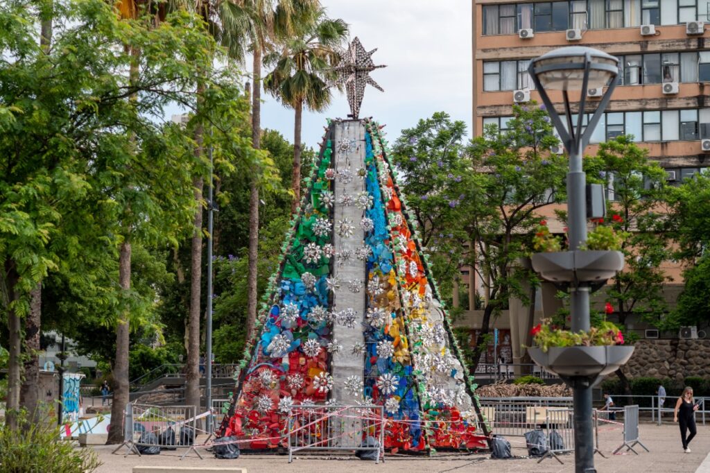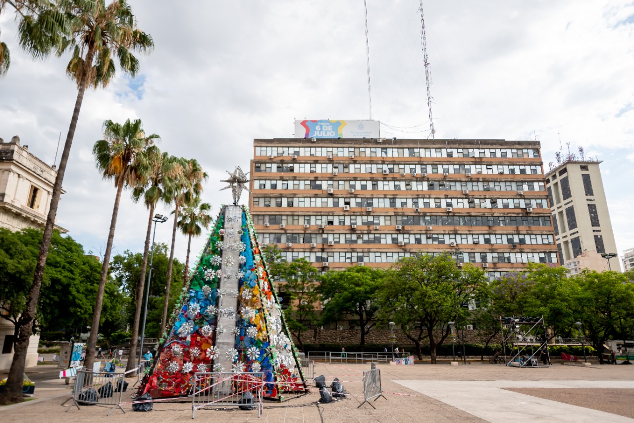 Por segundo año consecutivo, la Municipalidad de Córdoba lleva adelante la instalación de un árbol de Navidad realizado íntegramente con residuos secos provenientes de los distintos programas de reciclado que abastecen a los Centros Verdes de la ciudad.