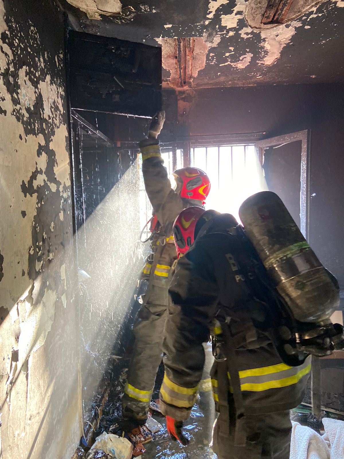 Posteriormente, personal de la Dirección de Bomberos realizó el refrigeramiento e inspección del ambiente afectado por el fuego. Se investigan las causas en que se originó el siniestro