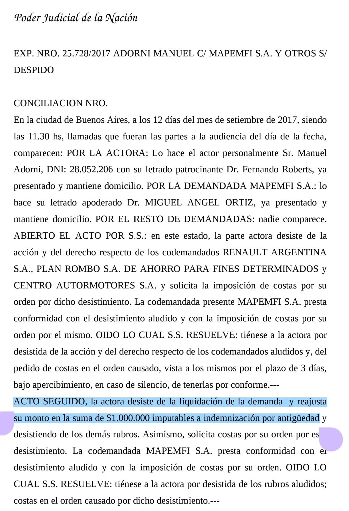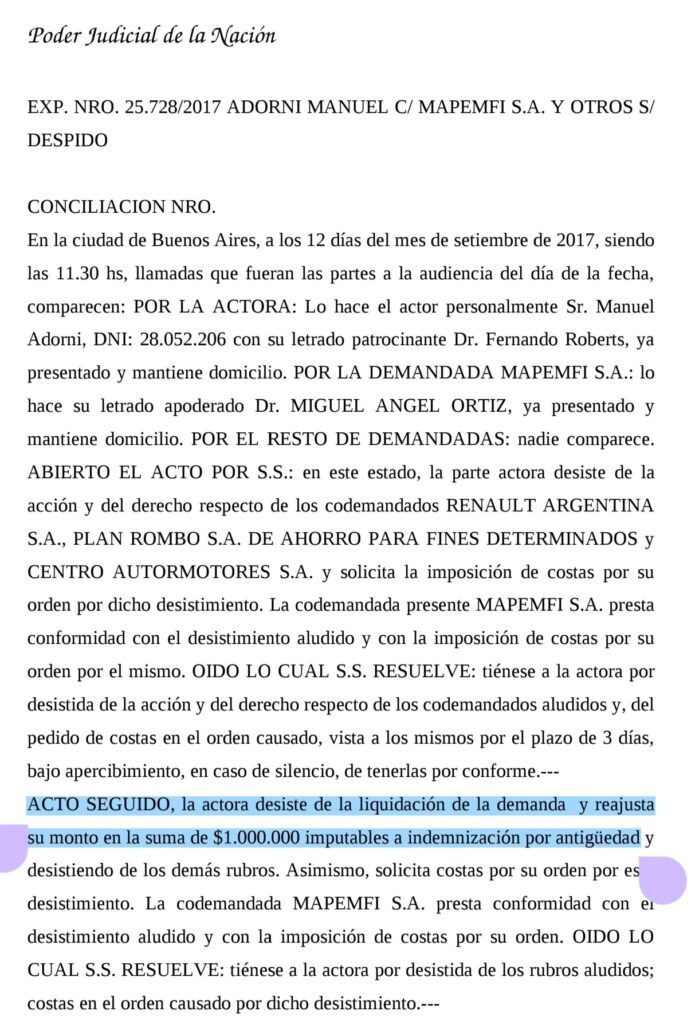 Antes de llegar a la Casa Rosada, Adorni se desempeñaba como empleado administrativo en una concesionaria vinculada a Renault. Tras su despido, inició un juicio laboral que incluyó no solo a su empleador directo, sino también a empresas del grupo automotor. El reclamo terminó en un acuerdo favorable, que le permitió cobrar una suma millonaria para la época.