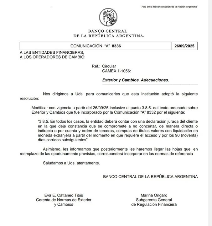 En la práctica, la disposición limita la operatoria de empresas, bancos y particulares, reinstalando un esquema de controles cruzados que recuerda al sistema vigente en los últimos años. Economistas consultados advierten que la medida puede calmar momentáneamente la presión sobre el dólar, pero al costo de profundizar la desconfianza de los inversores y alimentar la brecha cambiaria.