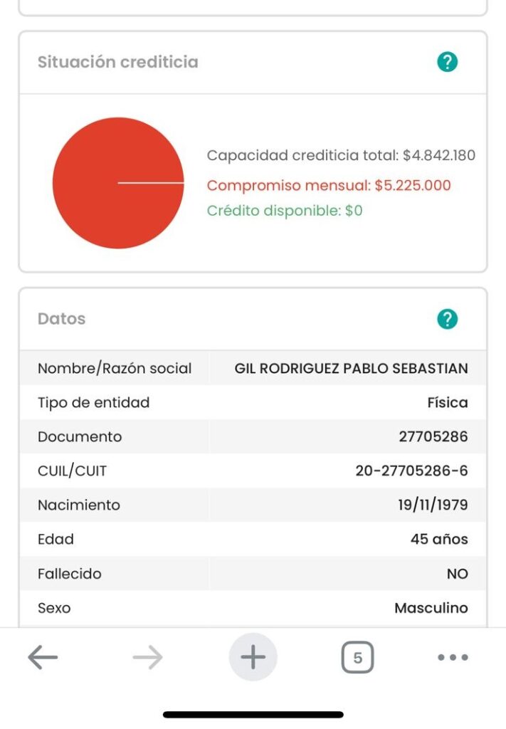 Que el beneficiario formal del millonario crédito del banco que Milei y Tillard quieren privatizar es un presta nombres, resulta una conjetura obvia: se trató de evitar que las dos máximas autoridades del PAMI Córdoba, y referentes libertarios (uno candidato) reciban de la misma entidad bancaria oficial beneficios crediticios en el mismo mes y 60 días antes de una elección. Lo real y no conjetural es que los informes de seguridad financiera señalan que el yerno de Donigian, el tal Pablo Sebastian Gil Rodriguez tiene una capacidad crediticia total de 4.842.180 pesos. Y el crédito otorgado por el Nación libertario implica un compromiso mensual de 5.225.000 pesos. No es que «no hay plata» como repite el líder Milei, en este caso «falta plata». El crédito es absolutamente irregular.