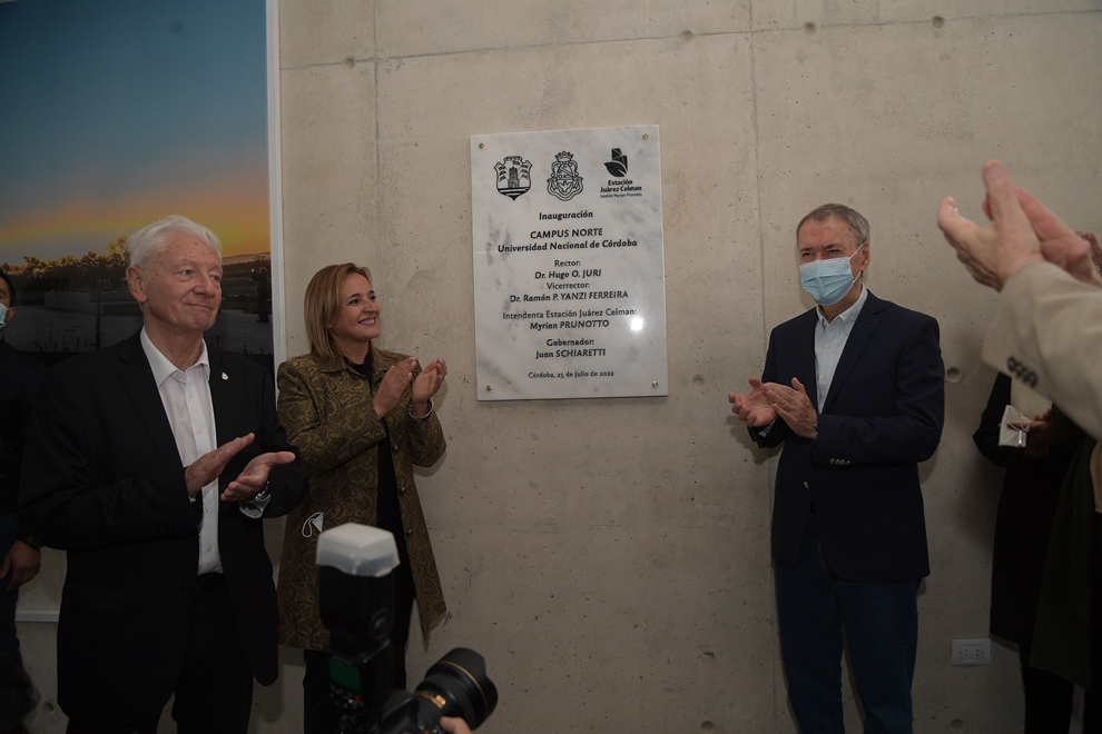 El gobernador de Córdoba, Juan Schiaretti, participó hoy en la inauguración del edificio principal del Campus Norte de la Universidad Nacional de Córdoba (UNC) y anunció que la Provincia construirá una pasarela peatonal sobre la autovía Variante Juárez Celman, a la altura del citado campus universitario, en la ciudad de Juárez Celman.