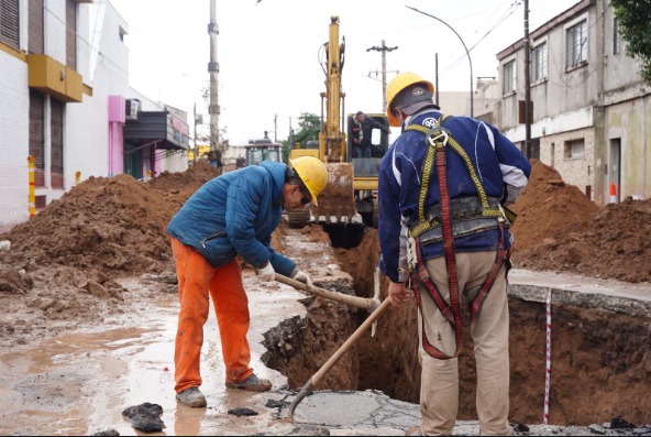A medida que se descubre el segmento que será intervenido a una profundidad de cinco metros, se estudia la red cloacal e interferencias para colocar tapones que permitan el secado de la cañería.