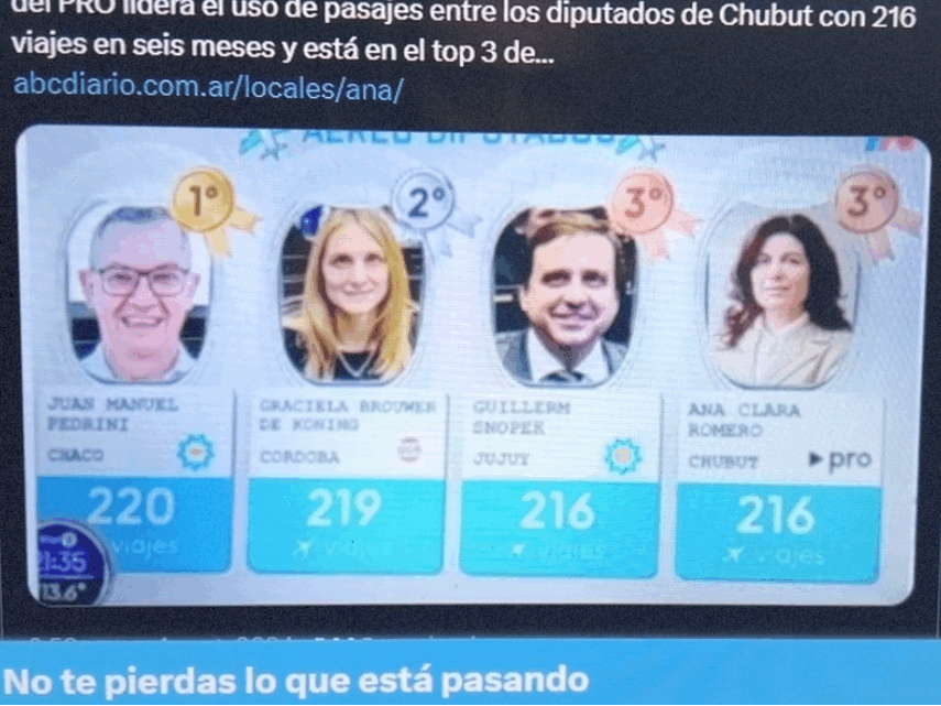 También, el informe asegura que el año legislativo comenzó el 1 de marzo lo que genera que la diputada en cuestión viajó 1,4 veces por día teniendo en cuenta que desde desde el inicio de sesiones ordinarias a hoy solamente hay 150 días.