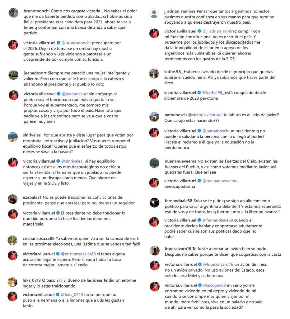 Otro comentario apuntó a que la vice quiere ser como la casa por sus viajes en avión. Y contestó: «En avión de línea, no un avión privado. No uso aviones del Estado, esos los usa Milei y su hermana».