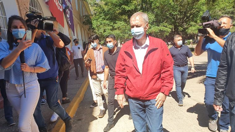 De campera roja, su clásica cábala, luego de votar se acercó a la prensa y dijo: «esta es una elección de medio término», por lo que «no va a definir quien va a ser candidato a gobernador en 2023».
